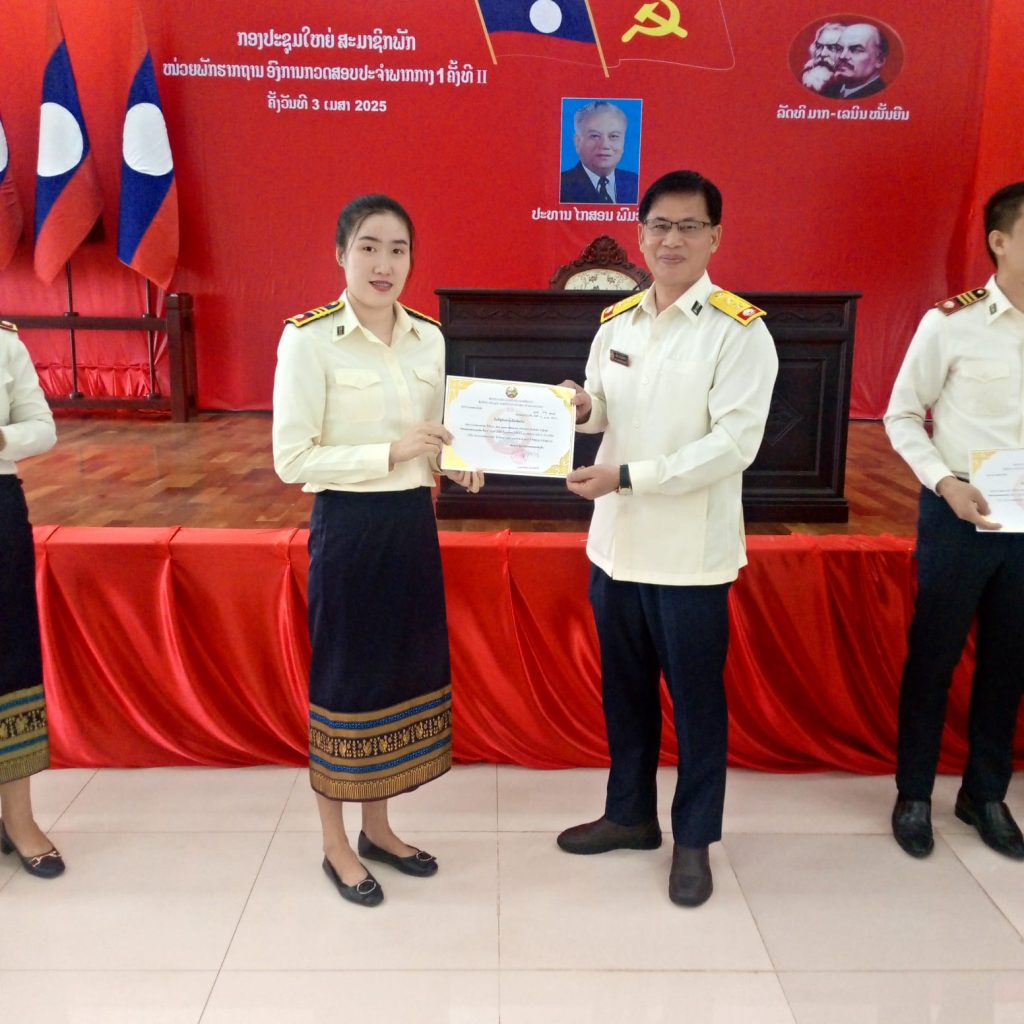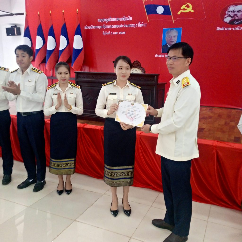 ພິທີມອບ-ຮັບໃບຢັ້ງຢືນນັກກວດສອບຂັ້ນ 1 ຊຸດທີ 6 ປະຈຳປີ 2025ພິທີມອບ-ຮັບໃບຢັ້ງຢືນນັກກວດສອບຂັ້ນ 1 ຊຸດທີ 6 ປະຈຳປີ 2025